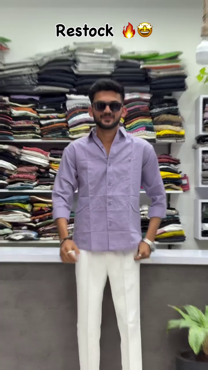 Step intoΒ effortless sophisticationΒ with thisΒ lavender purple linen shirtΒ that blendsΒ modern minimalismΒ andΒ ethnic charm! π FeaturingΒ relaxed button-down fit,Β crisp spread collar,Β long roll-up sleeves,Β subtle sheen, andΒ perfect dropped shouldersΒ β paired flawlessly withΒ tailored white trousersΒ for that sharp contrast seen on the confident model in your trendy boutique image! π TheΒ soft lavender hueΒ pops beautifully, perfect for office ethnic days, casual brunches, coffee dates, or Surat’s stylish hangouts! ββ¨