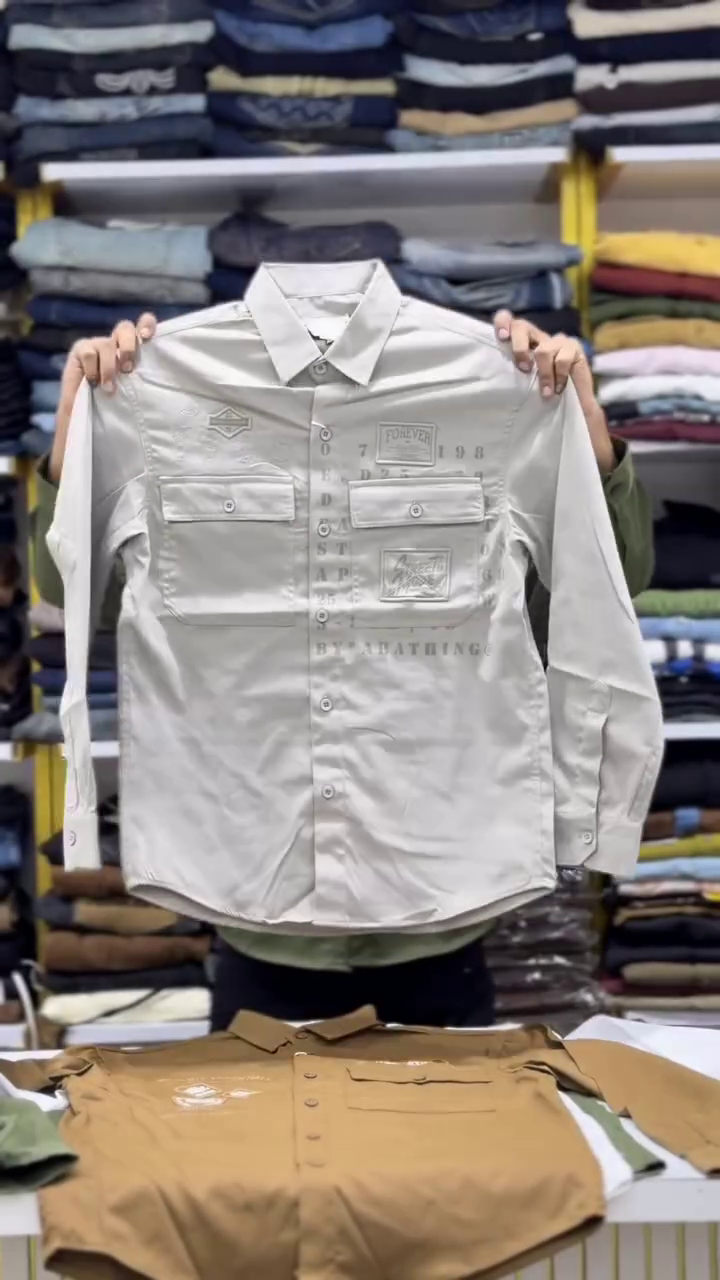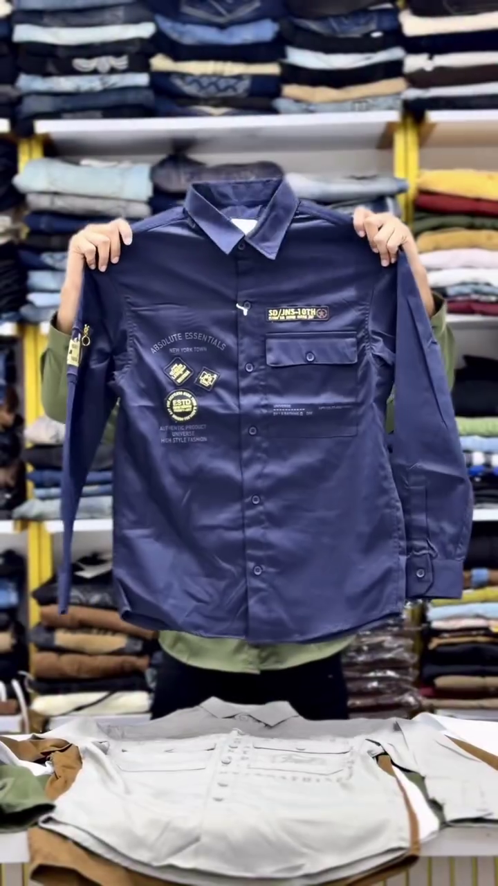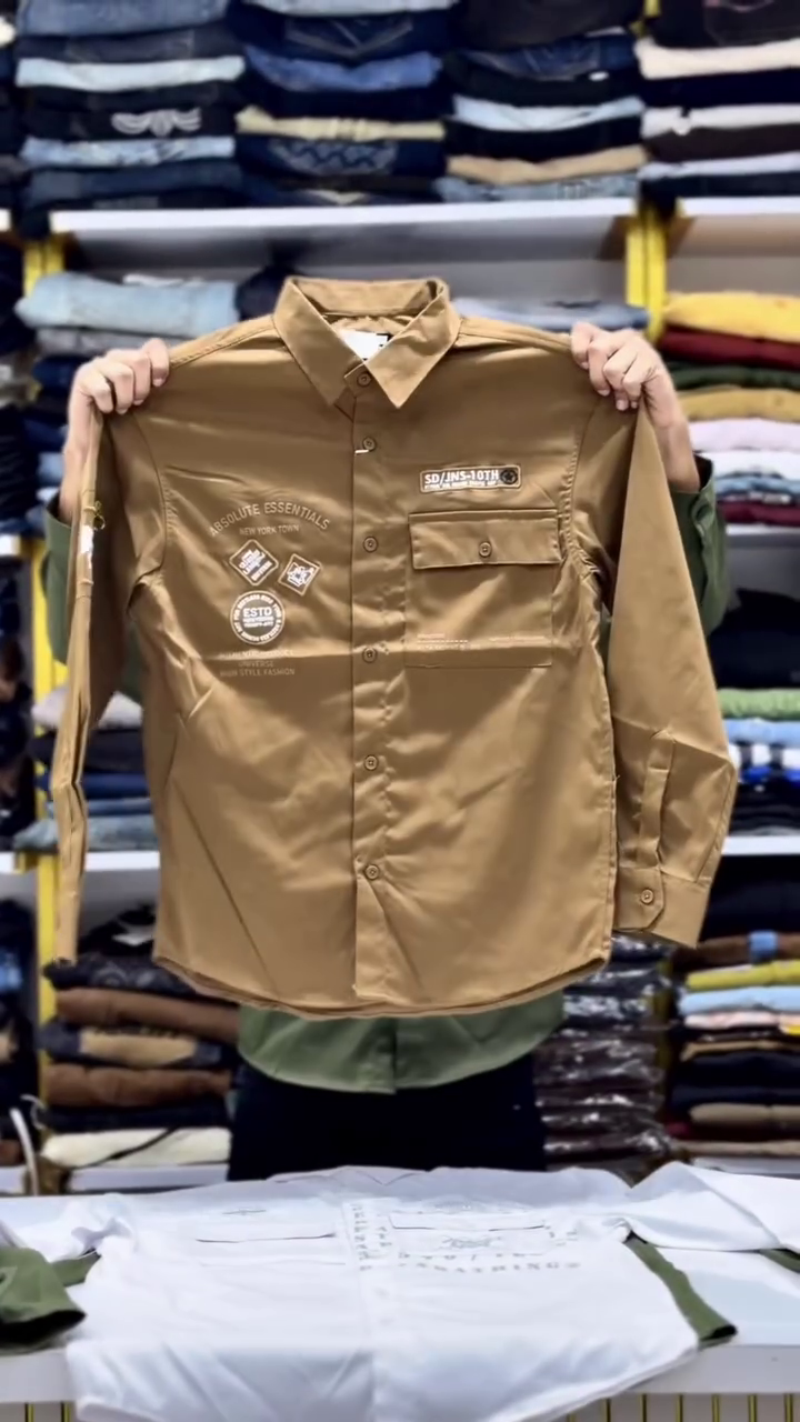 Level up your streetwear with thisΒ rugged khaki cargo shirtΒ that’sΒ pure urban explorer vibes! π Made fromΒ durable cotton twill, it featuresΒ multiple patch pocketsΒ with flaps,Β brass button details,Β roll-up sleevesΒ with tabs,Β embroidered logo patchesΒ (“SD-LABEL”, “ESTO NY”),Β “Absolute New York Essentials” chest badge, andΒ “Urban Street Fashion” sloganΒ β perfectly showcased hanging in your vibrant denim boutique! π TheΒ versatile khaki shadeΒ works for every adventure, ideal for casual outings, weekend hikes, city exploration, or Surat’s street style scene! πΊοΈ