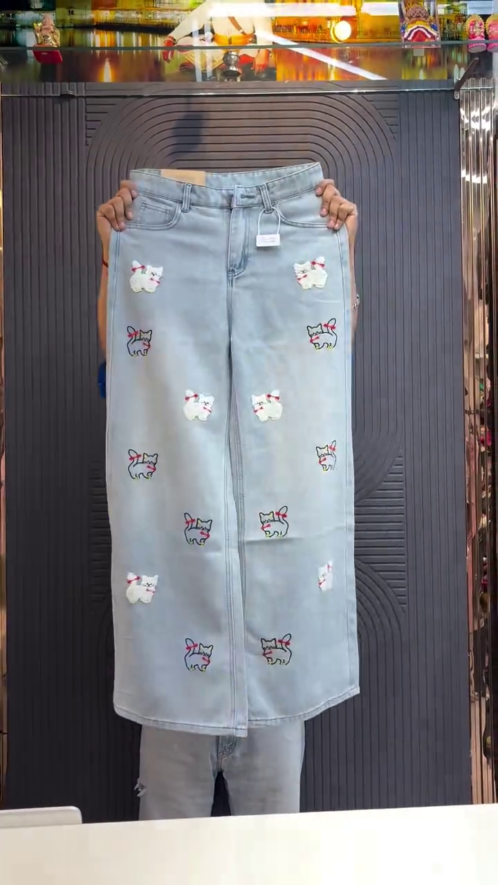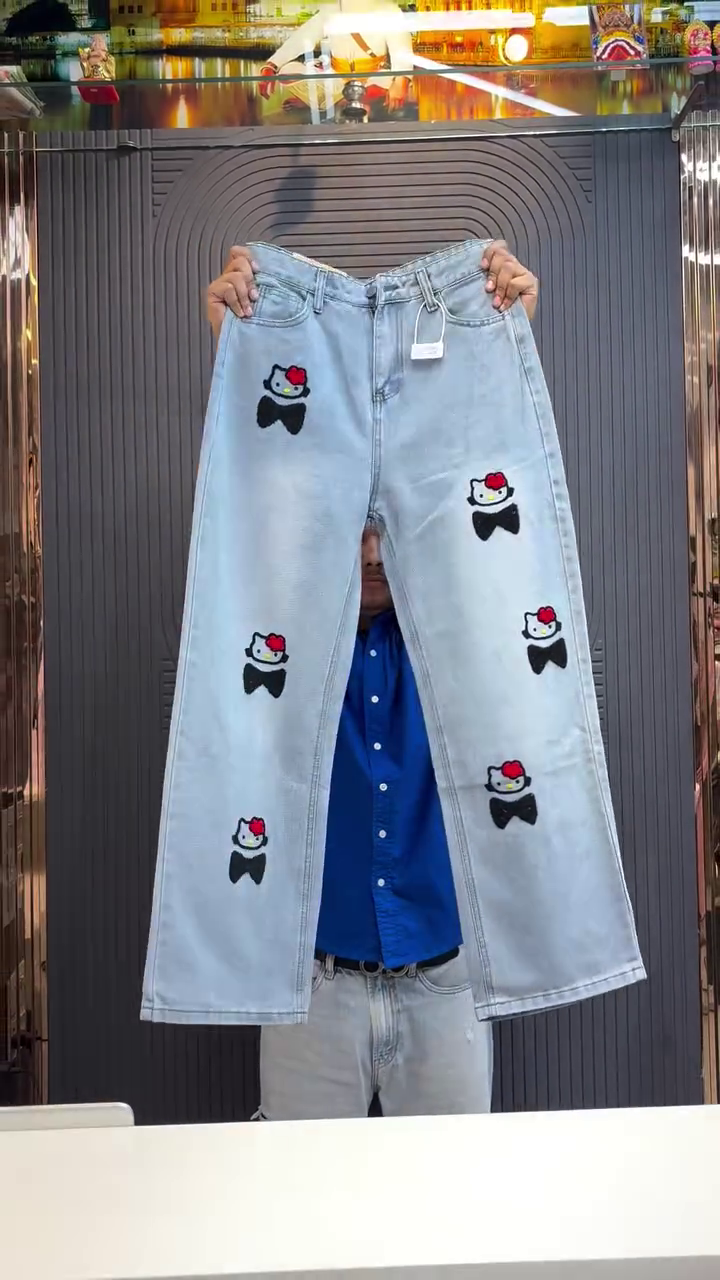 Turn heads with theseย whimsically embroidered light wash jeansย that transform classic denim intoย artistic wearable joy! ๐ Crafted fromย soft stretch denim, they featureย mid-rise waist,ย relaxed straight-leg fit,ย classic 5-pocket styling, andย vintage light washย base canvas that’s absolutelyย covered in 3D flower patches! Vibrantย orange daisies,ย mint green petals,ย hot pink blooms,ย purple posies,ย white blossoms,ย red rosesย โ every color pops against the faded blue denim for maximum festival cheer, perfectly showcased hanging in your trendy boutique with colorful decor! ๐ Ideal for music festivals, art walks, casual dates, boho brunches, or Surat’s creative scene! ๐ถ