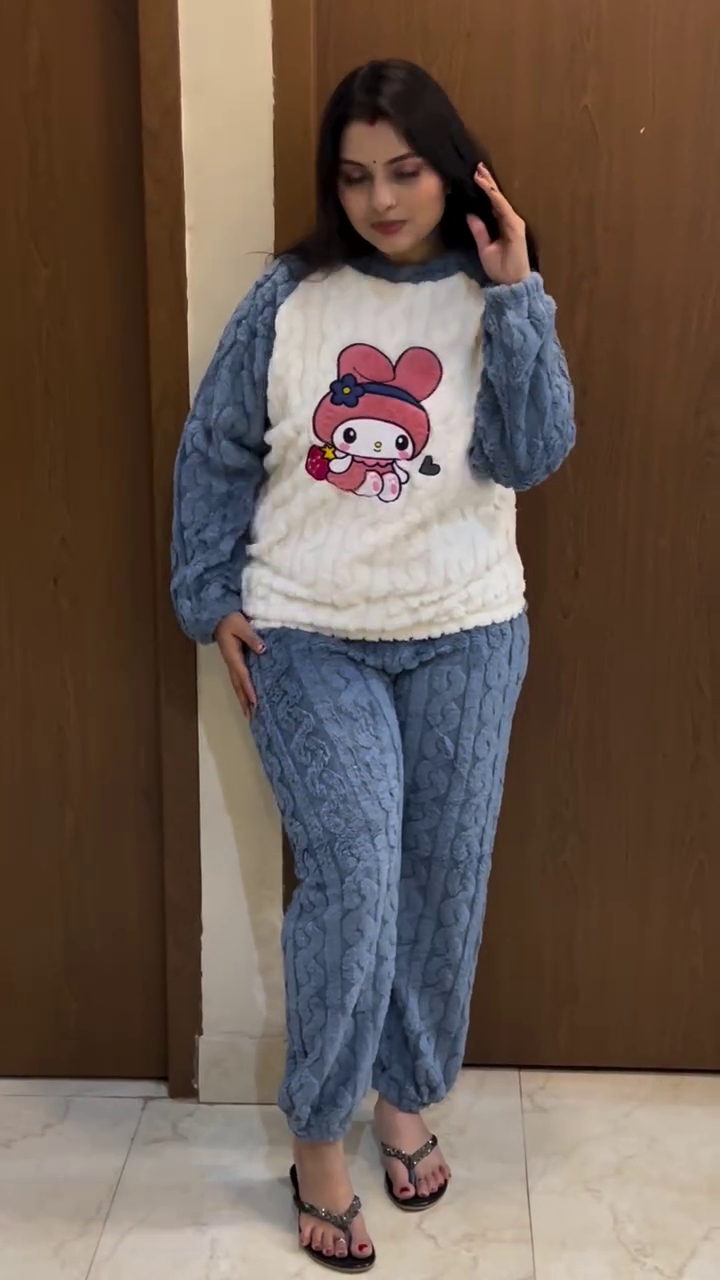 Be the first to review “🍓 Fluffy Bunny Character Pullover & Pastel Blue Knit Pajama Set – Cute Thermal Sleepwear”