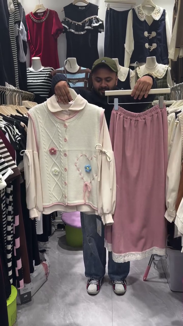 📏 Fit Type: Regular cardigan, flowy skirt