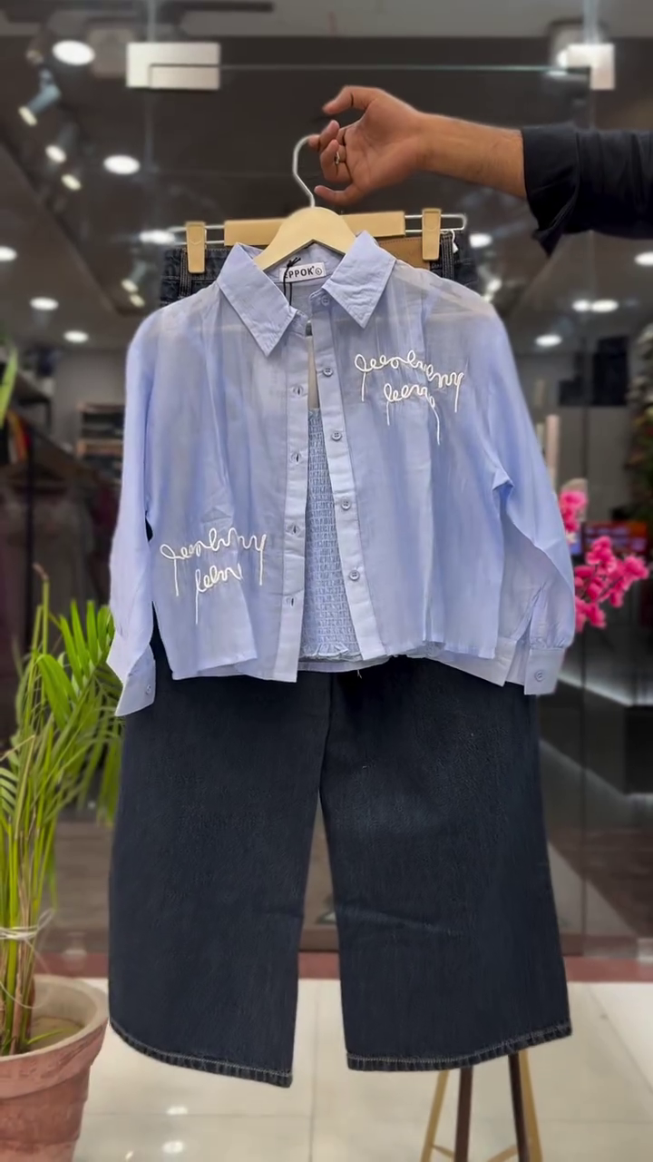 Crafted from breathable, lightweight fabric, the shirt keeps you cool and comfortable all day long π¬οΈβοΈ, making it ideal for casual outings, brunch dates βπ°, shopping days ποΈ, or even travel looks βοΈπ. The inner top adds a soft layering touch, giving you that effortlessly put-together aesthetic π. The wide-leg denim pants π provide a relaxed fit with a flattering silhouette, ensuring both comfort and confidence wherever you go πβ¨.