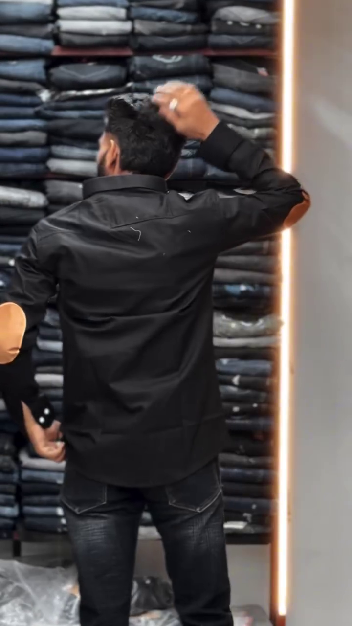 Styled with deep indigo jeans and hands-in-pocket ease, this look is effortlessly grounded and quietly powerful 🧍♂️🖤. The red mark on the forehead adds a touch of cultural pride, making this ensemble not just fashion—but identity and story woven into fabric 🔴📖.