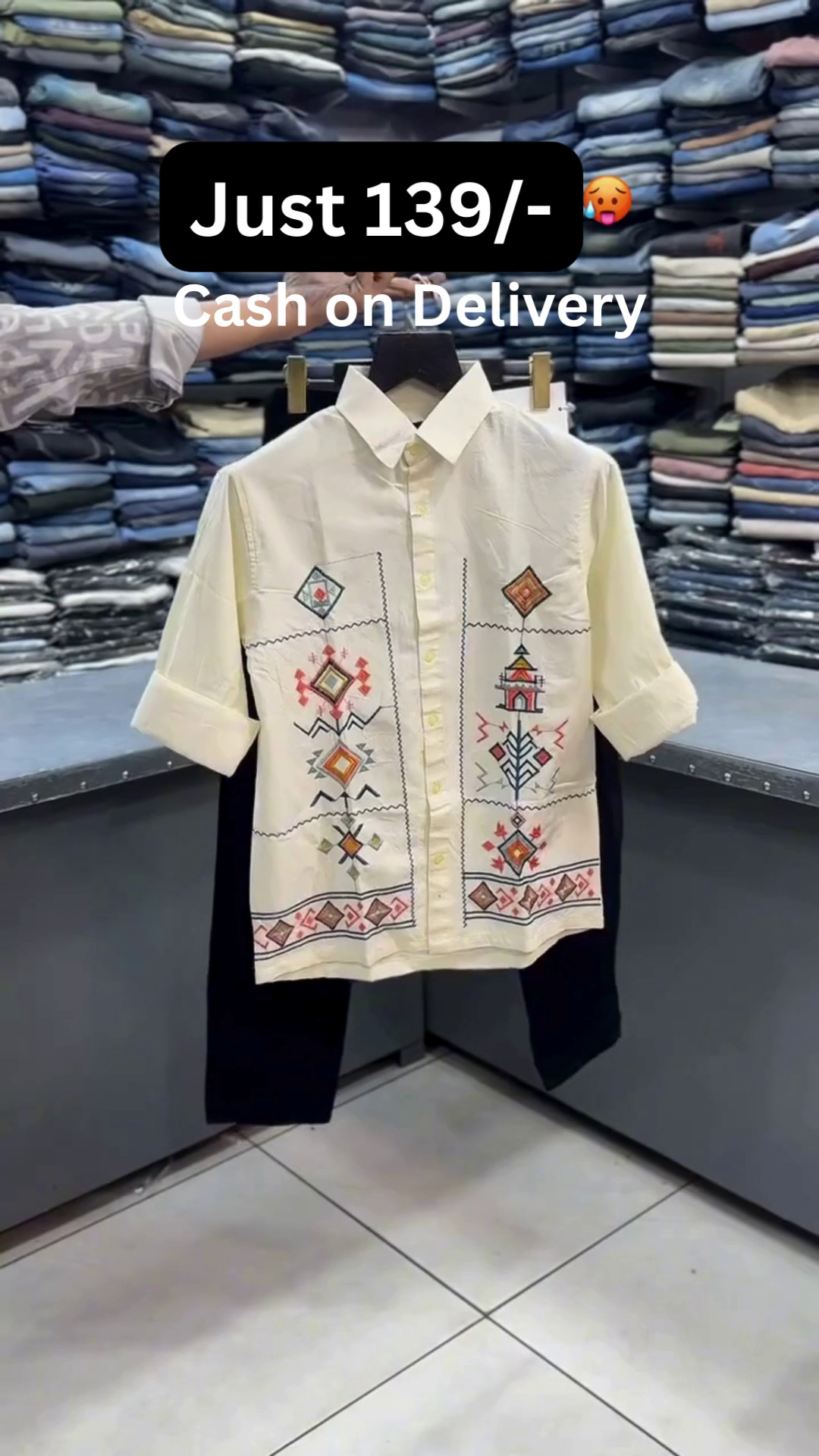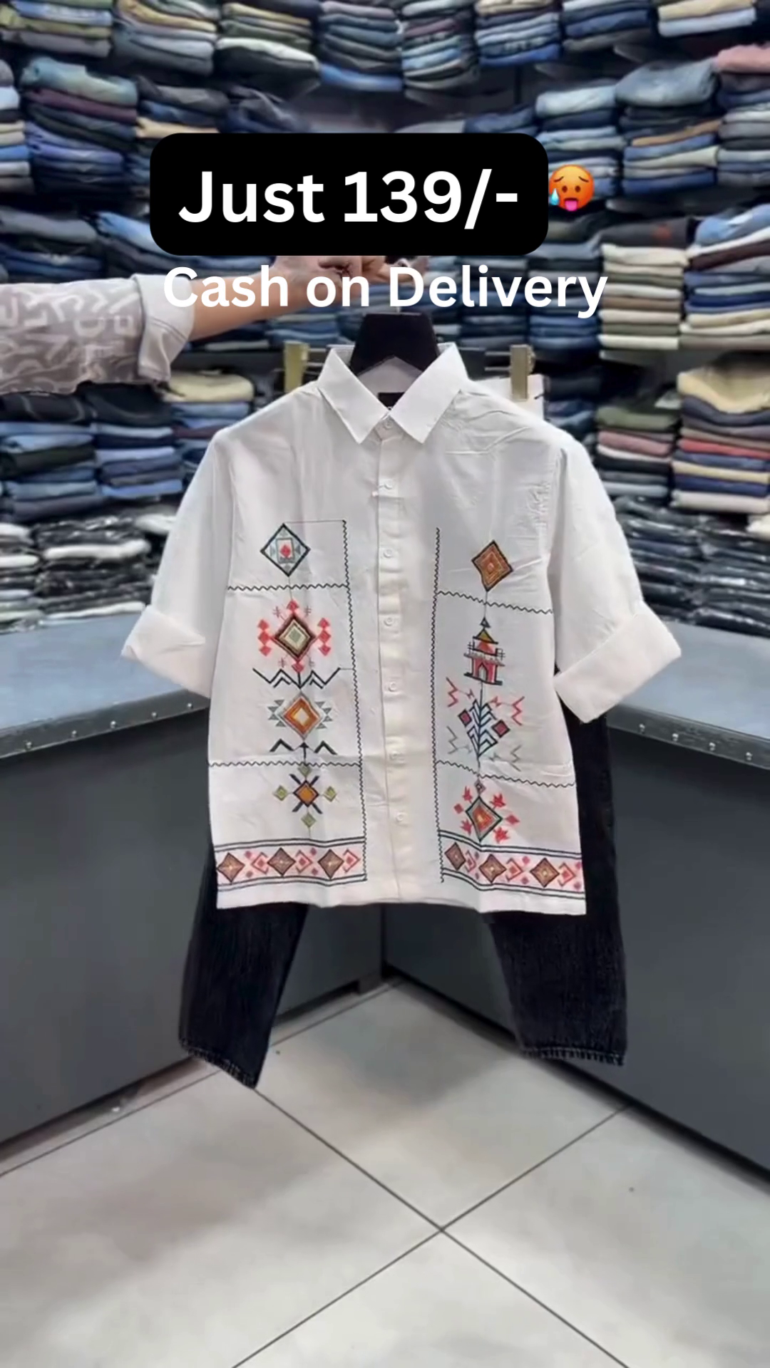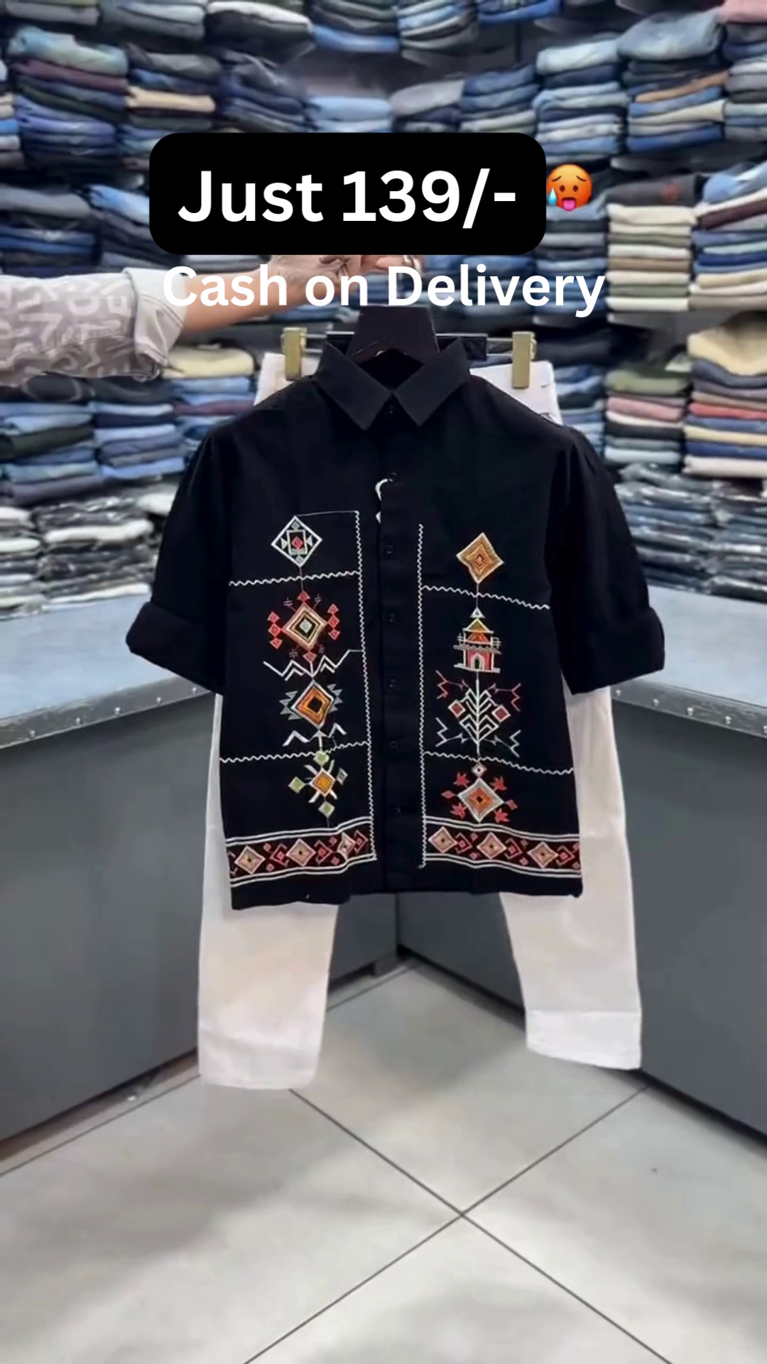 🤍✨ This stylish combo features a crisp white half-sleeve shirt designed with intricate geometric and ethnic-inspired embroidery on the front panels 🧵🎨. The shirt comes with a structured collar 👔, front button closure 🔘, and relaxed breathable fabric 🌬️ making it perfect for festive occasions 🎉, casual outings 🚶‍♂️, and smart ethnic styling 💫.