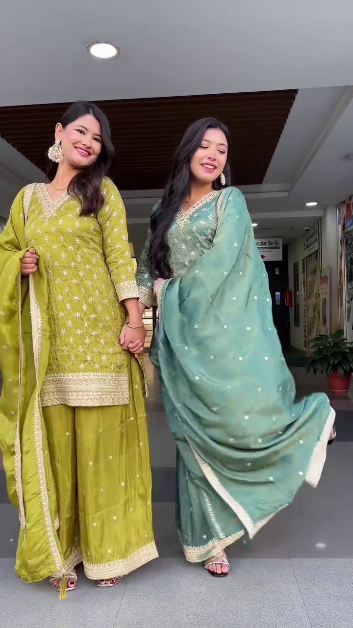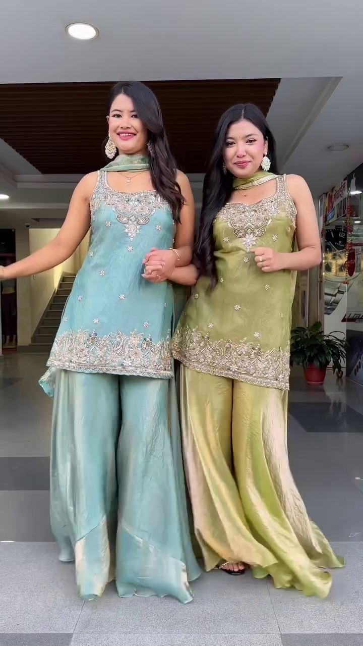 Celebrate festive fashion with these stunning Radiant Pastel Luxe Embroidered Sharara-Kurti Ensembles available in two gorgeous huesβ€”Aqua Blue πŸ’ βœ¨ and Olive Green πŸŒΏπŸ’›. Perfect for daytime weddings, mehendi functions, festive brunches, or coordinated bestie looks, these outfits blend grace with shimmer effortlessly.