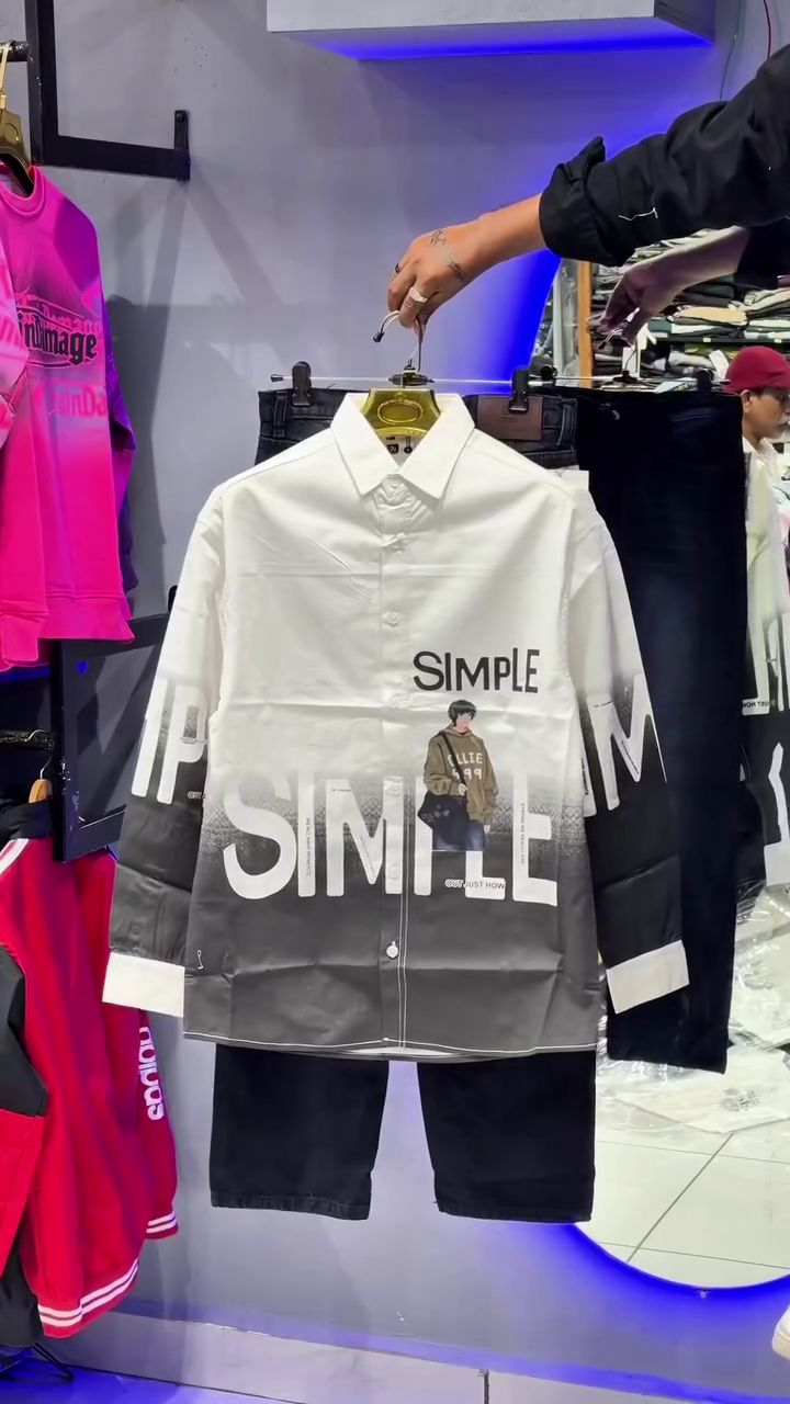 The shirt includes long sleeves, a classic collar, and front button closure, providing a timeless shirt structure while maintaining modern styling.