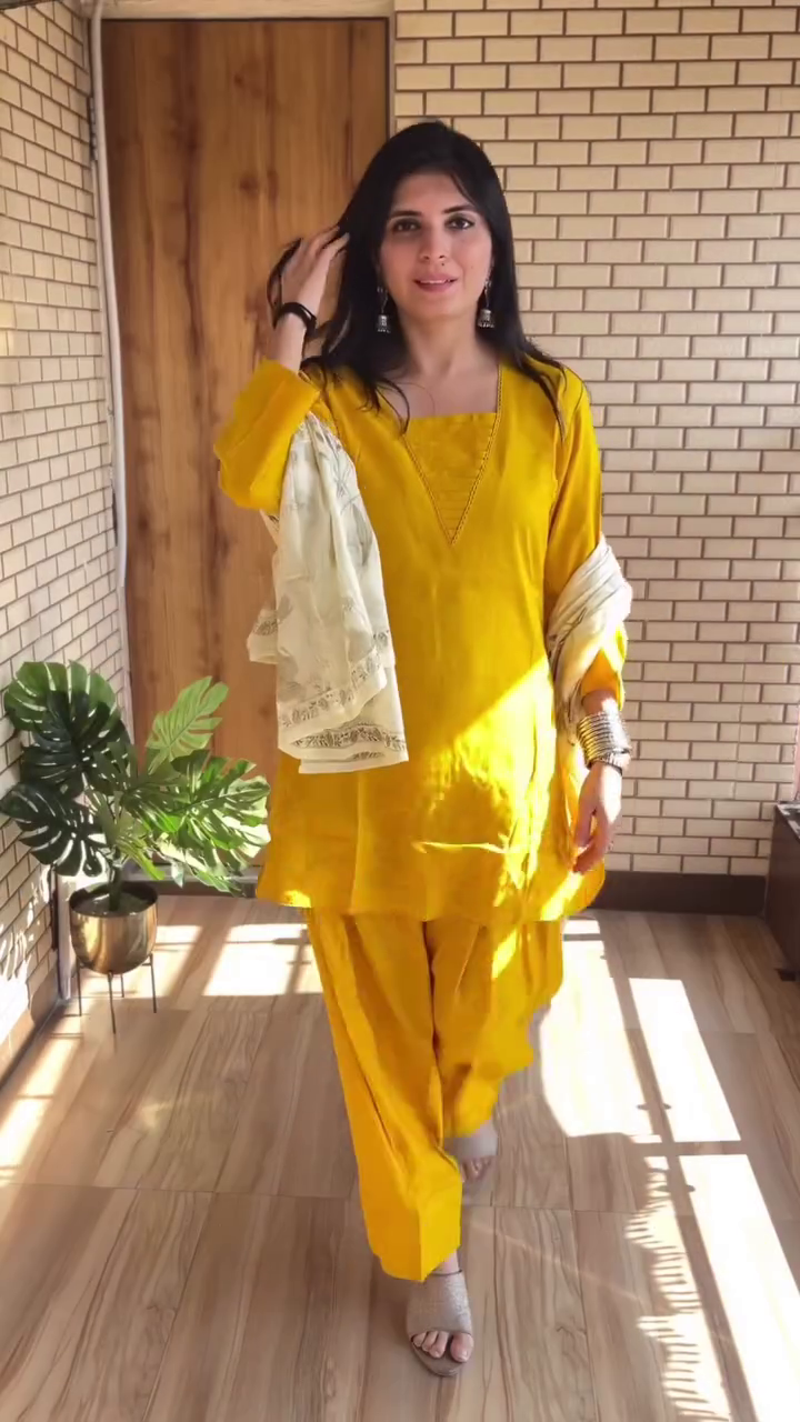 The relaxed straight-fit pants provide comfort and flexibility, making the outfit suitable for daily wear while maintaining a structured silhouette. The neutral ivory tone creates a sophisticated base that pairs beautifully with the patterned dupatta.